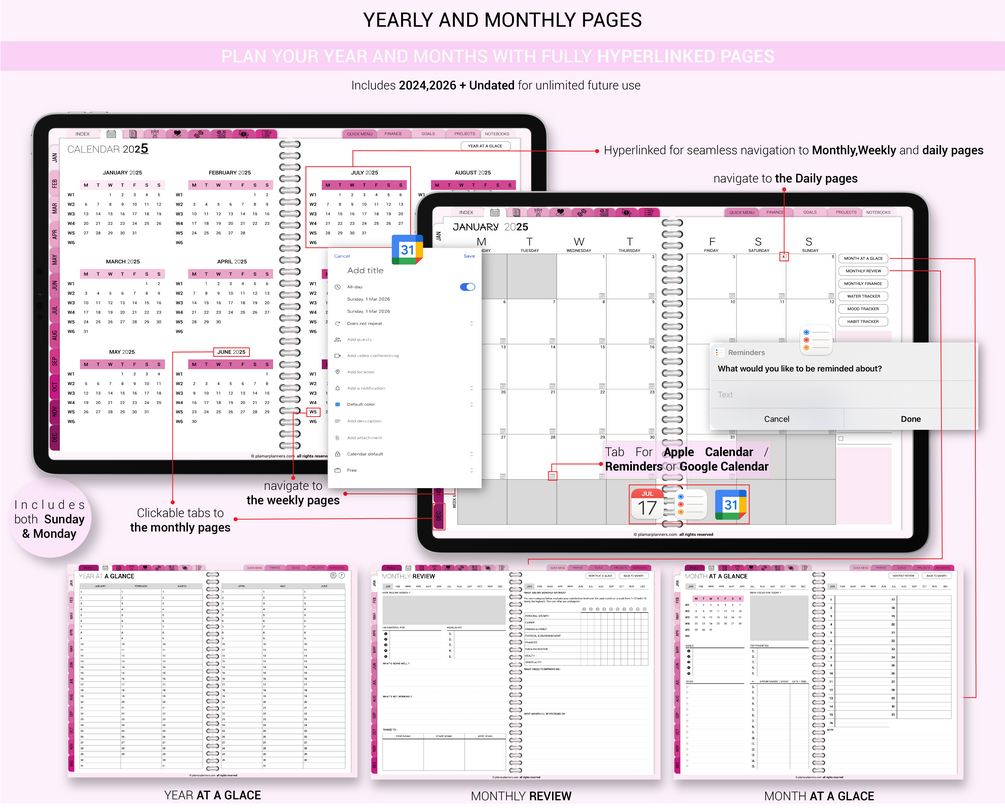 Digital Planner 2025-2026-2027 & Undated | Goodnotes, iPad, Notability | Daily, Weekly, Monthly Planner | Digital Stickers & Calendar