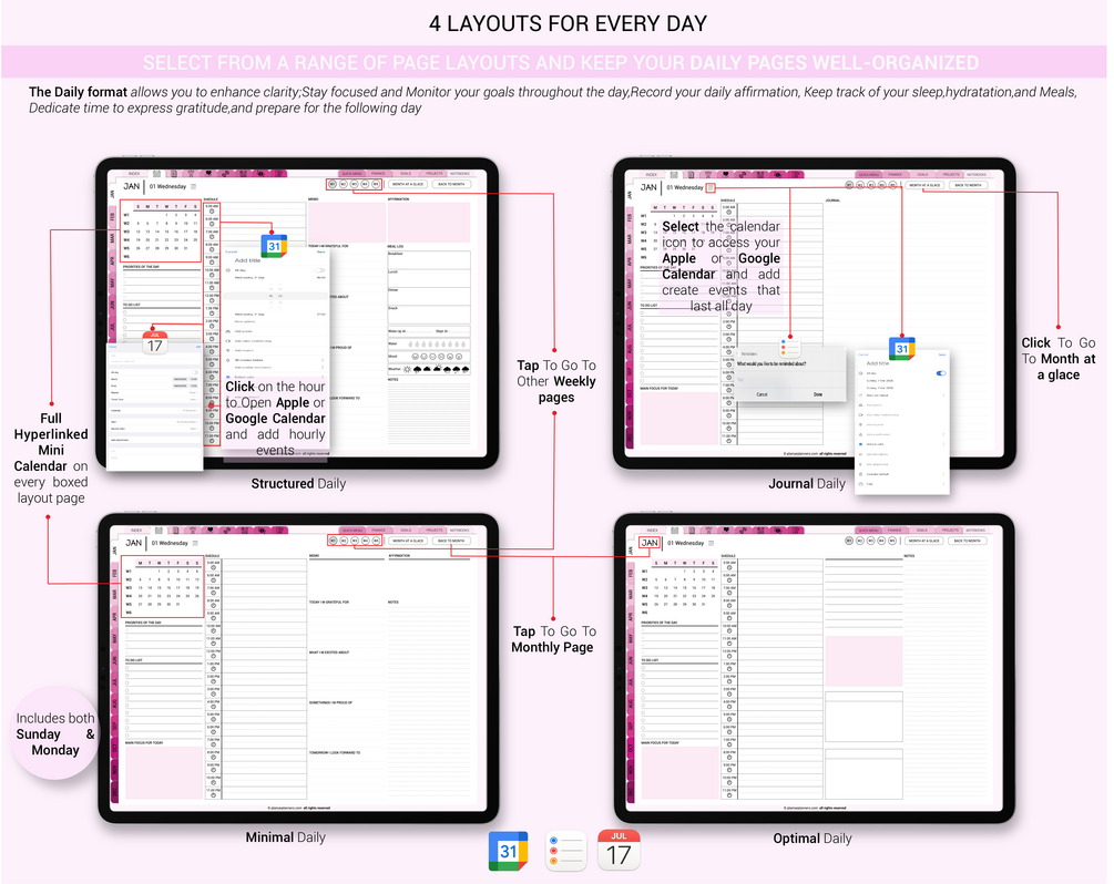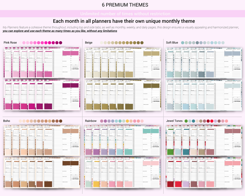 ✵ 6000 Digital planners with various Daily and Weekly layouts in both Sunday and Monday starts