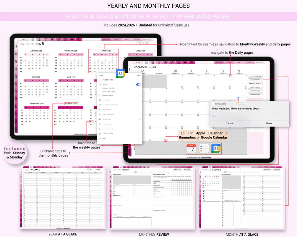 Digital Planner 2025-2026-2027 & Undated | Goodnotes, iPad, Notability | Daily, Weekly, Monthly Planner | Digital Stickers & Apple Google Calendar