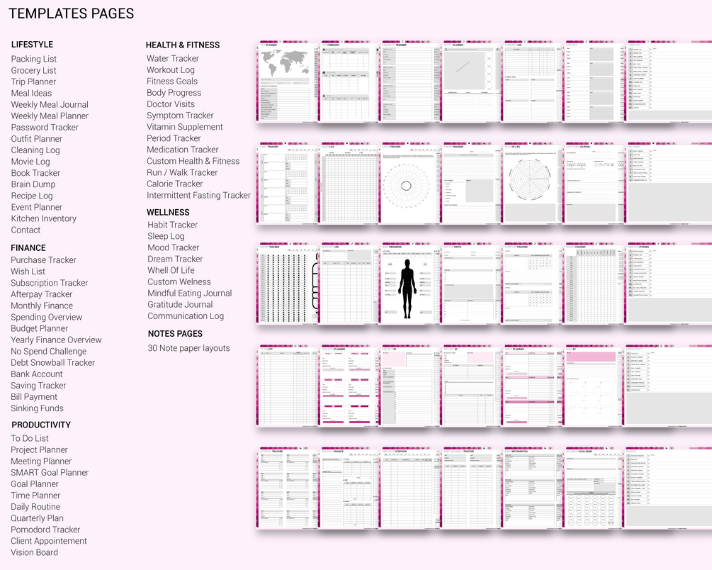 ✵ 63+ templates for Lifestyle, Wellness, Finance, Productivity, and Fitness