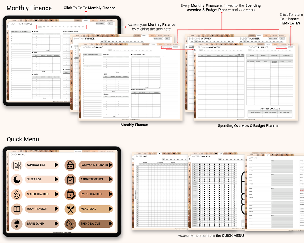 β’ π Navigate to key sections like finance, wellness, notes, and projects without flipping endlessly.