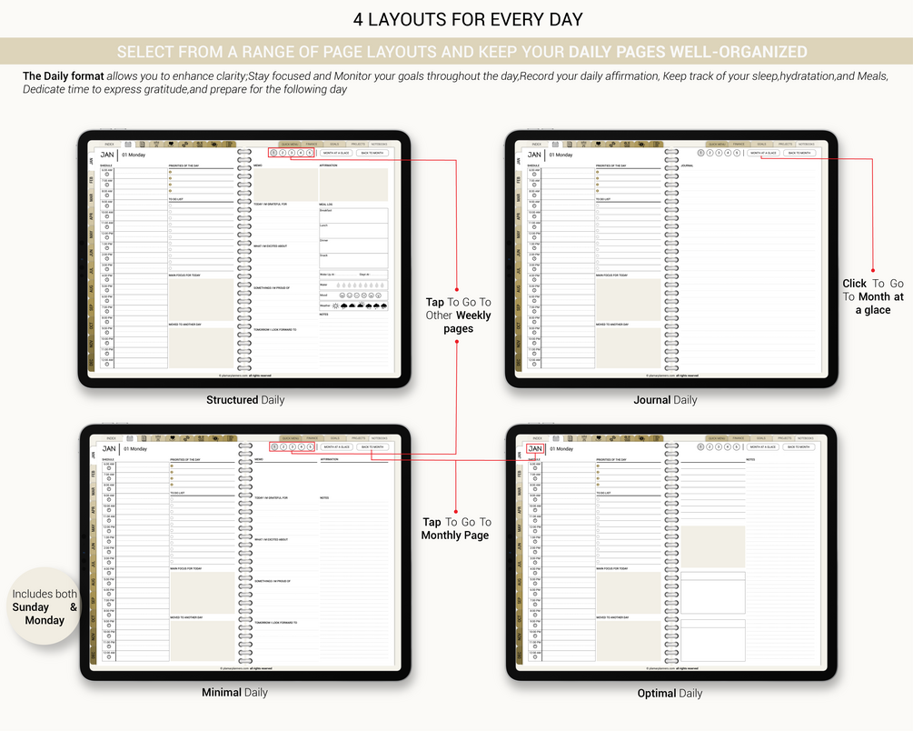 🗂️ Includes 4 weekly layouts + 4 daily planning templates
