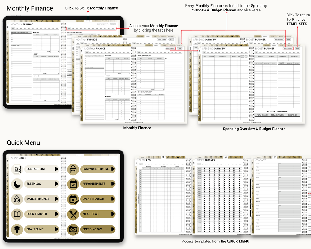 • 📂 Navigate to key sections like finance, wellness, notes, and projects without flipping endlessly.