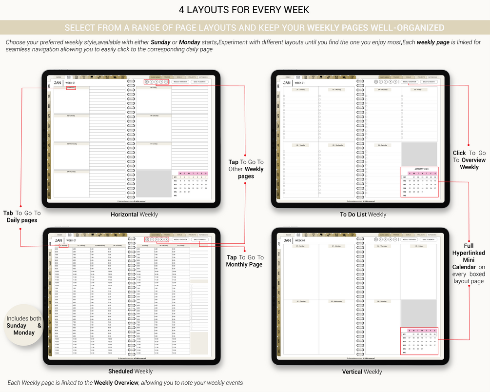🗂️ Includes 4 weekly layouts + 4 daily planning templates